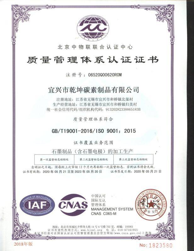 宜兴市乾坤碳素制品有限公司主要经营:碳素制品、炉料、环保设备及配件、塑料制品及原料(除危险化学品)的销售。公司尊崇“踏实、拼搏、责任”的企业精神,并以诚信、共赢、开创经营理念,创造良好的企业环境,以全新的管理模式,完善的技术,周到的服务,卓越的品质为生存根本,我们始终坚持用户至上、用心服务于客户,坚持用自己的服务去打动客户。