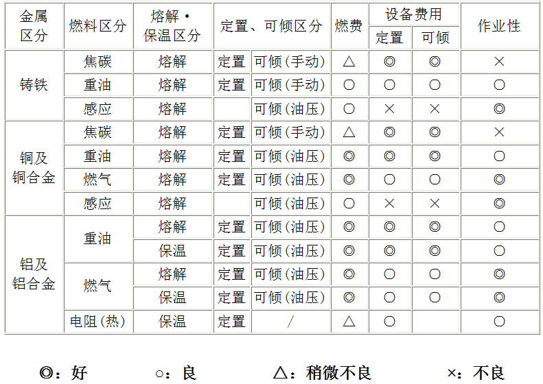 石墨坩埚炉的类型和特点见下表: